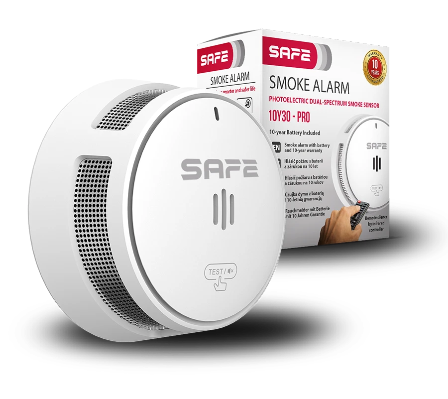 Hlásič požiaru SAFE 10Y30 – PRO disponuje celým radom nových technológií vrátane AI SAFE mikroprocesora na filtrovanie falošných poplachov v reálnom čase.