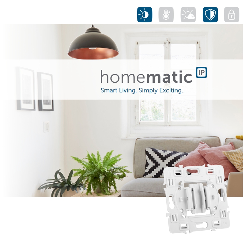 Adaptér umožňuje integrovať rámčeky a kryty modelového radu Céliane alebo Mosaic od spoločnosti Legrand. Adaptér sa integruje k spínaciemu akčnému členovi HmIP-BSM-I.