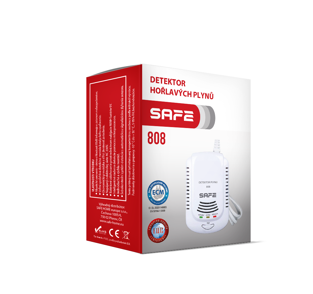 Hlásič plynu SAFE 808 sa ideálne hodí pre detekciu úniku plynu zo všetkých domácich plynových spotrebičov a plynových kotlov. Deteguje všetky horľavé plyny bežne sa vyskytujúce v domácnostiach.
