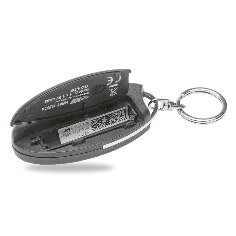 Elegantná bezdrôtová kľúčenka (HmIP-KRCA), umožňujúca jednoduché ovládanie zabezpečovacej časti systému stlačením tlačidla, je súčasťou systému múdrej domácnosti Homematic IP a alternatívou k aplikácii Homematic IP.