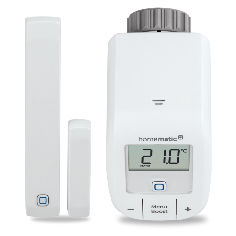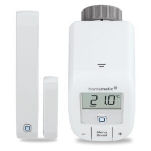 Autonómna súprava pre inteligentné ovládanie vykurovania s otvorenou cestou do múdrej domácnosti. Štartovacia súprava pre reguláciu vykurovania (HmIP-SK9) a okamžitú úsporu energií, určená aj na prípravu integrácie múdrej domácnosti Homematic IP obsahuje dva základné prvky pre manuálne riadenie priestorovej teploty v miestnosti a proces vykurovania podľa individuálnych potrieb: Termostatickú hlavicu Basic HmIP-eTRV-B a bezdrôtový Okenný a dverný senzor – magnetický HmIP-SWDM, čo vedie k okamžitej úspore a zníženiu výdavkov na energie až o 30 %.