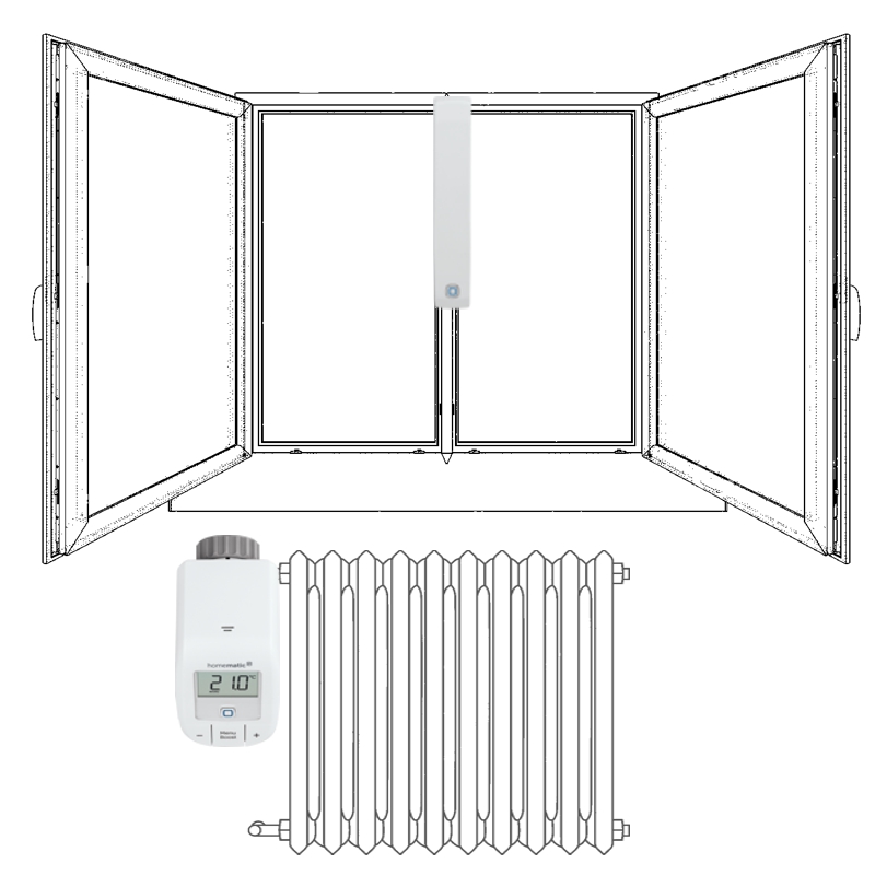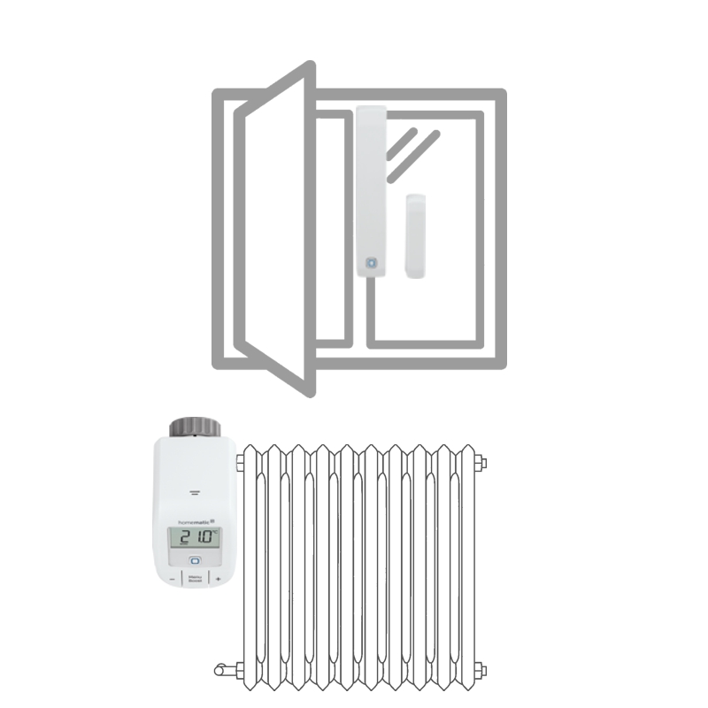 V autonómnej súprave pre reguláciu vykurovania (HmIP-SK9) plní okenný a dverný senzor HmIP-SWDM v kombinácii s bezdrôtovou Termostatickou hlavicou Basic HmIP-eTRV-B), funkciu magnetického kontaktu, ktorý v prípade detekcie otvorenia okna odovzdá informáciu a termostatická hlavica automaticky zníži prísun horúcej vody do radiátorového telesa. Akonáhle sa okno zavrie, radiátor začne znova zvyšovať teplotu v miestnosti.