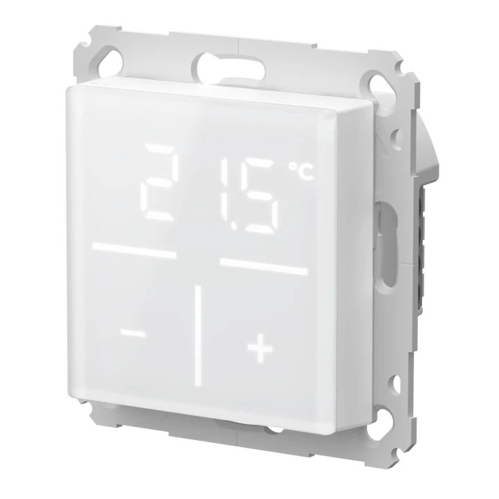 Poznámka: Pre kompletné riešenie odporúčame dokúpiť zodpovedajúci sklenený rámček, ktorý dokonale doplní vzhľad vášho termostatu a zaistí harmonické začlenenie do vášho interiéru.