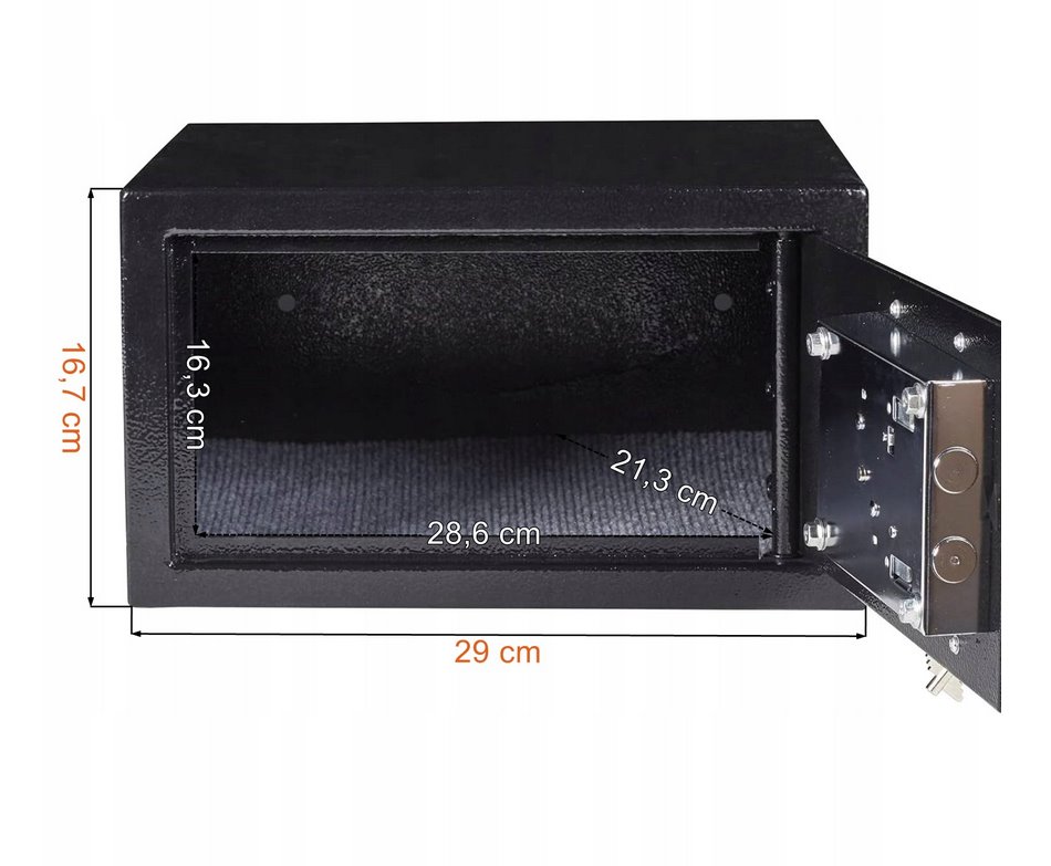 Kompaktný uzamykateľný masívne trezor X031ML z pevnej oceľovej konštrukcie. Obsahuje skryté pánty a 2 oceľové západky zabraňujúce vypáčeniu. Objem činí 9,93l. Má 6-tich úrovňový zámok. Čalúnené dno zabraňuje poškrabaniu uložených predmetov.