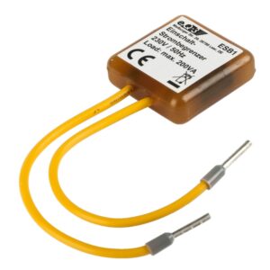 Kompenzátor nábehového prúdu (ESB1) sa zapája do série so záťažou a vďaka svojej kompaktnej veľkosti je vhodný na montáž do zápustnej alebo povrchovej elektroinštalačnej krabice.