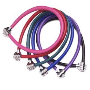 Oceľové krútené kombinačné lanko s dĺžkou 55cm a priemerom 6mm má vinylový poťah, ktorý zabraňuje poškrabaniu. Obsahuje pevnú kombináciu 3 číslic. Farba fialová. Cena za kus.