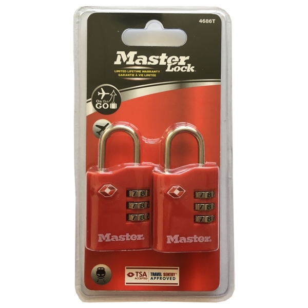 Set 2 visiacich kombinačných zámkov so šírkou 30 mm pre batožinu, schválené agentúrou TSA. Kovové telo zámku je odolné proti poškodeniu, strmeň z ocele o Ø 3 mm je odolný proti prerezania a prestrihnutí. Zámok obsahuje nastaviteľnú 3-ciferný kombináciu zámku.