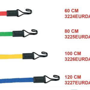Plochá upínacia guma 3227EURDAT s dĺžkou 1200 mm a šírkou 18 mm je zakončená háčikmi. Maximálna nosnosť je 40 kg. Pre väčšiu pevnosť v ťahu a jednoduché uchytenie nákladu sú otočné háčiky z dvojitého drôtu. Cena za kus.