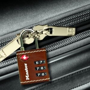 Visiaci kombinačný zámok so šírkou 32 mm na batožinu, schválený agentúrou TSA, má elegantný kožený dizajn. Kovové telo zámku je odolné proti poškodeniu. Strmeň je z ocele o Ø 3 mm a je odolný proti prerezaniu a prestrihnutiu. Obsahuje nastaviteľnú 3-cifernú kombináciu zámku.
